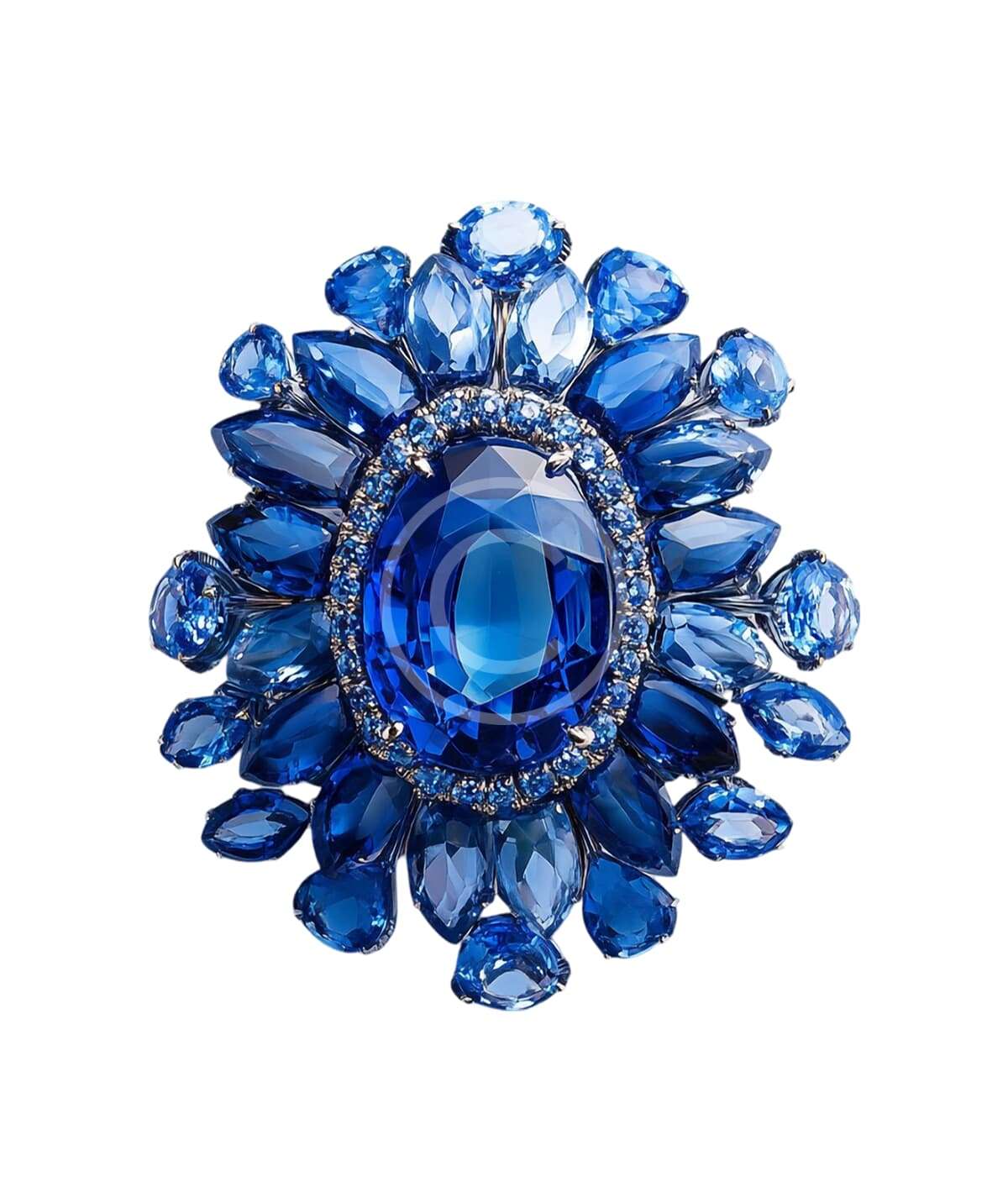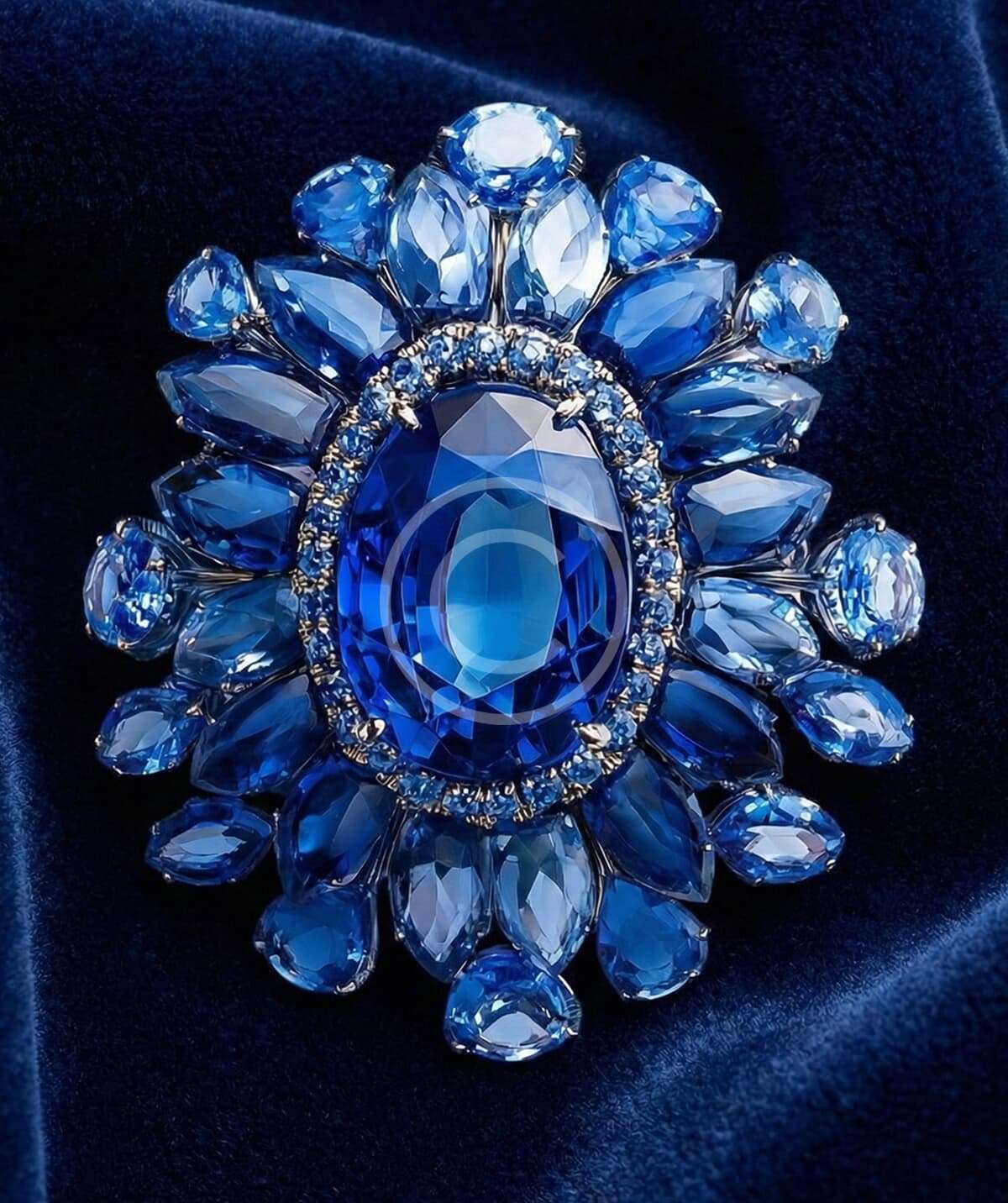 This blue crystal statement brooch captures light from every angle with its intricate arrangement of faceted stones. Inspired by vintage jewelry exhibited in galleries, it adds glamour and sophistication to coats, scarves, or evening attire. A collectible accessory with timeless appeal.
